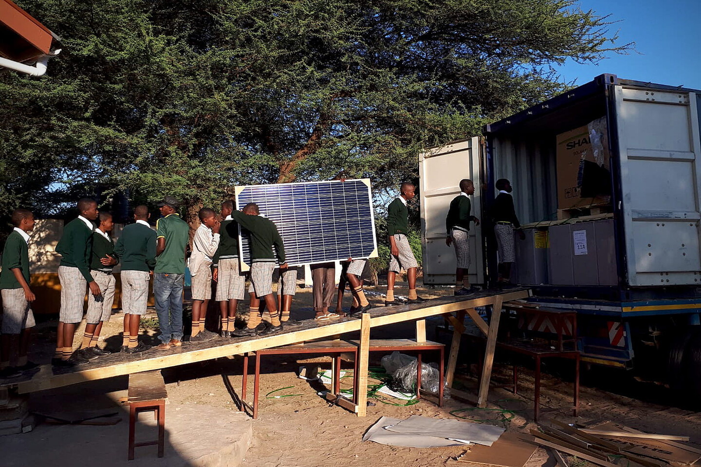 - In September 2023, another container departed with solar equipment for the Mpinda Boys school.
