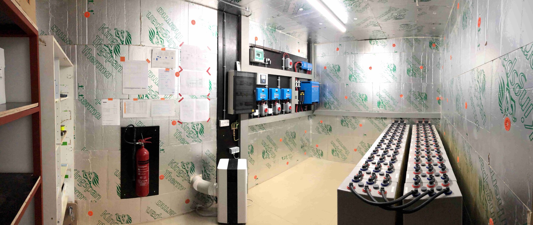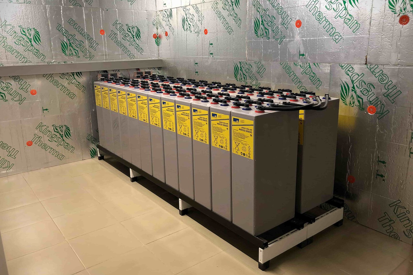 - a large battery bank, necessary because stored energy must be available in the evening or during power outages