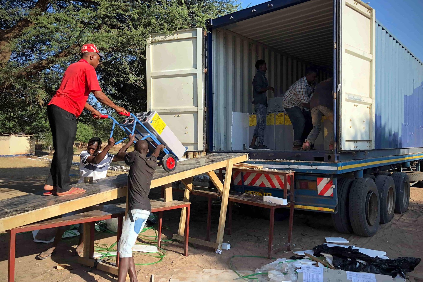 Since high-quality solar equipment is difficult to obtain in Tanzania, we purchased everything in Belgium. The materials were subsequently shipped by container via the port of Dar es Salaam to Igunga.