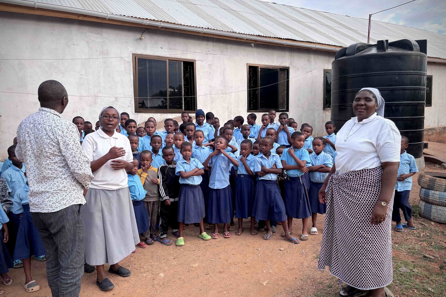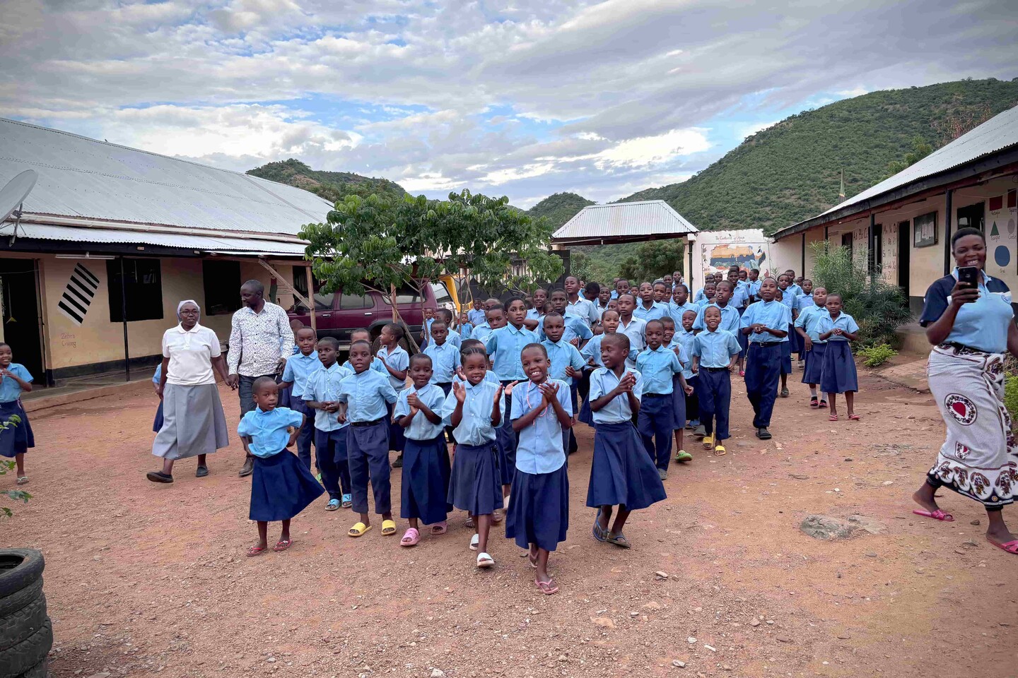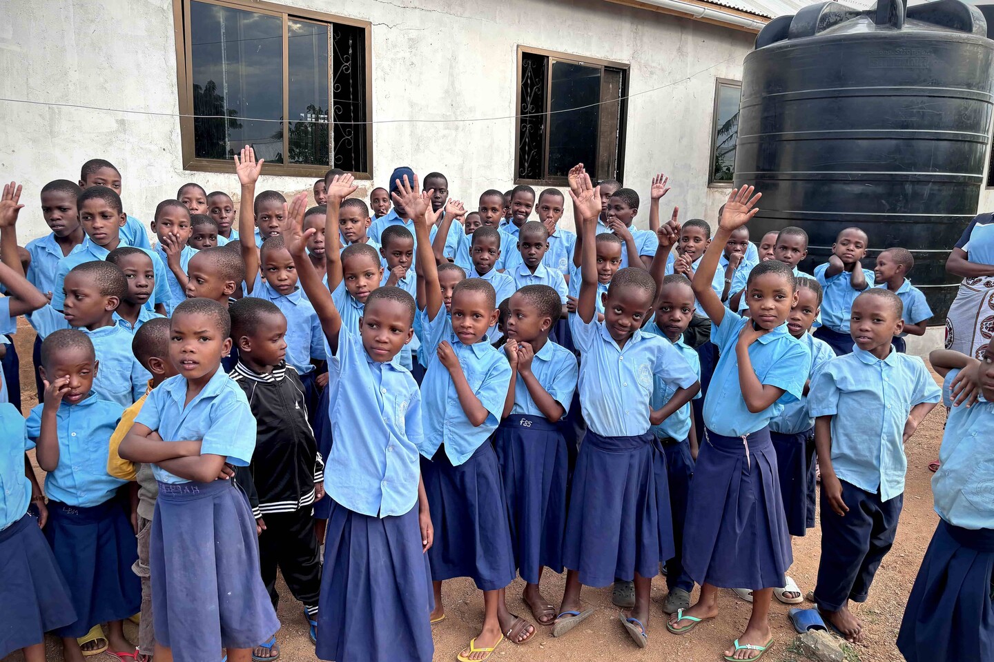 Because drinking water is also a challenge in this part of Tanzania, the school asked for help in collecting rainwater during the rainy season. After all, rainwater is the purest water available and therefore the most suitable as drinking water. After installing roof drains on all school buildings, the seven associated rainwater wells were also installed just before the start of the rainy season, with a total collection capacity of 40,000 liters. It will not surprise you: since then, every rain shower is greeted with a festive rain dance!